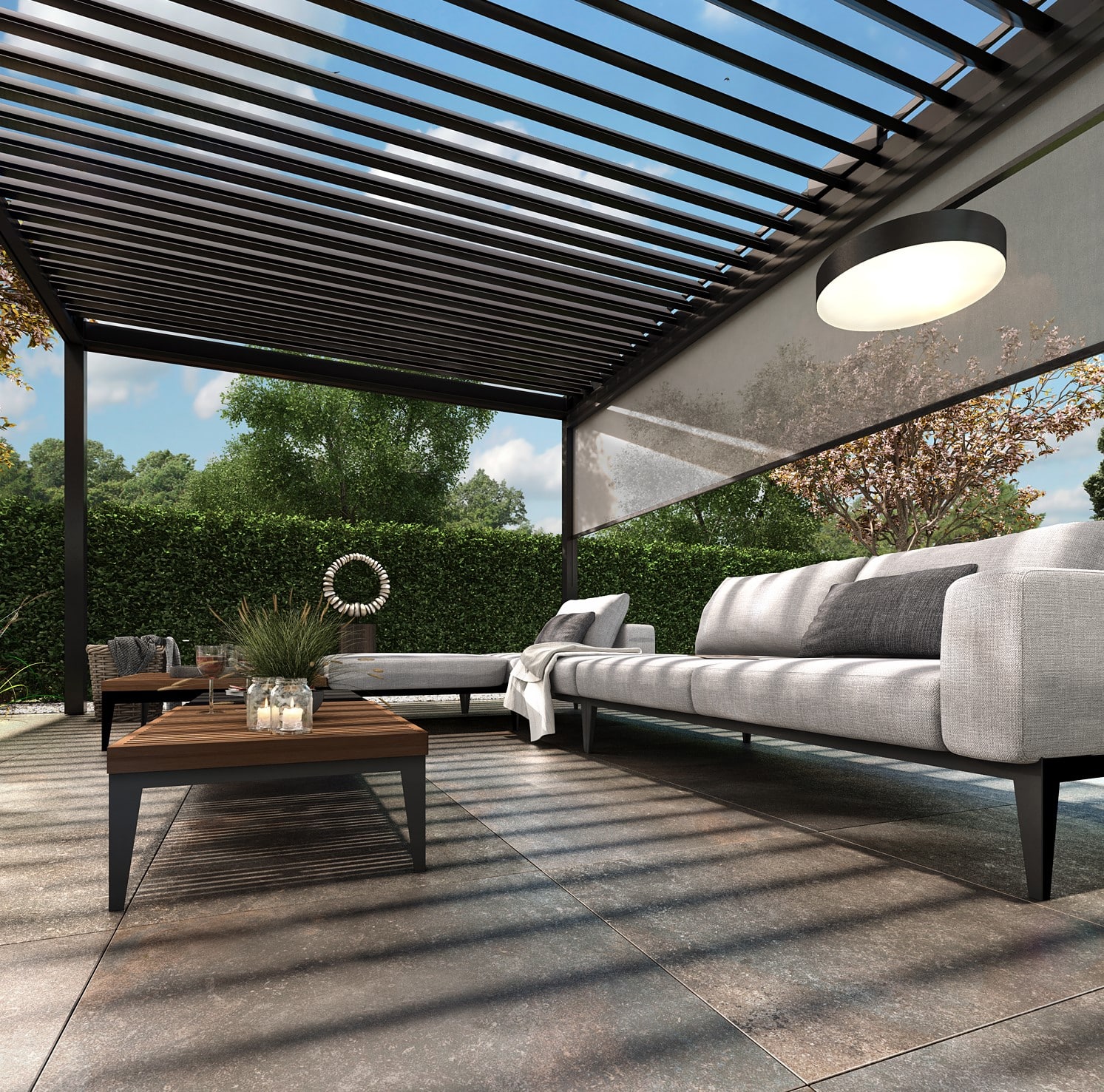 Nous avons étendu notre gamme de produits et vous proposons la pergola bioclimatique Pallazzo Lounge, pour vous permettre de profiter de votre extérieur !